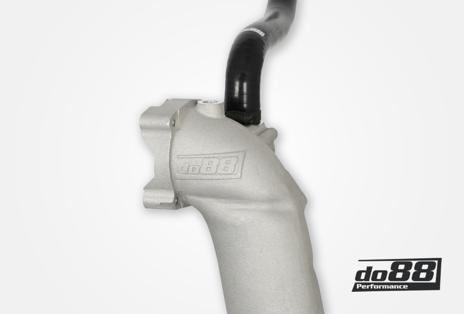 Kuumalla puolella (turbo->välijäähdytin) sarjamme sisältää suuren 70mm (2 ¾") alumiiniputken, jolla ei ole rajoittavaa litteää muotoilua, joka löytyy moottorin ja sisemmän pyöräkotelon väliltä OEM-putkessa. Kylmällä puolella (välijäähdytin->kaasuläppäkotelo) valualumiinista valmistettu latausputkemme kulkee koko matkan kaasuläppäkotelosta välijäähdyttimen ulostuloon. Tällä putkella on valtava 86mm letkuliitäntä välijäähdyttimeen verrattuna OEM:n 64mm:iin. Tämä liitäntä vastaa do88-suorituskykyvälijäähdyttimen suuren 80mm letkuliitännän sisähalkaisijaa. Putkessa on myös kaksi CNC-koneistettua 1/8 NPT-liitäntää, jotka ovat täydellisiä esimerkiksi metanoliruiskutukseen tai esimerkiksi ahtopainesensorien ulostuloihin.