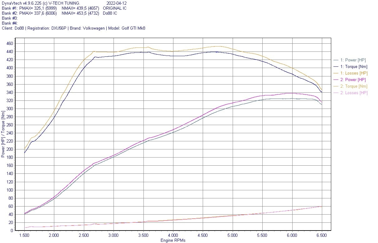 - Peak powergain of +12hp and peak torque gain of +14 Nm! Measured on VW Golf GTI Clubsport Edition 45 2021 with stock software.