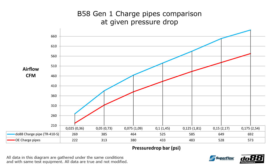 Monia jälkimarkkinoiden latausputkisarjoja B58-moottorille on saatavilla, mutta mielestämme useimmat niistä eivät ole kunnolla suunniteltuja. Monet kilpailijat käyttävät perussuunnittelua: kaksi putkea, jotka on yhdistetty suoralla alenevalla silikoniletkulla. On selvää, että he eivät ole ymmärtäneet lämpöliikkeen merkitystä tässä järjestelmässä. Tällainen suunnittelu aiheuttaa melkein varmasti ongelmia letkun irtoamisen vuoksi, koska se ei salli lämpötilamuutoksesta johtuvaa liikettä. Yleinen ratkaisu, jota ihmiset ajattelevat, on kiristää klampeja enemmän, mutta tämä rikkoo useimmissa tapauksissa putket, koska se muuttaa klampin pintaan muotoa.