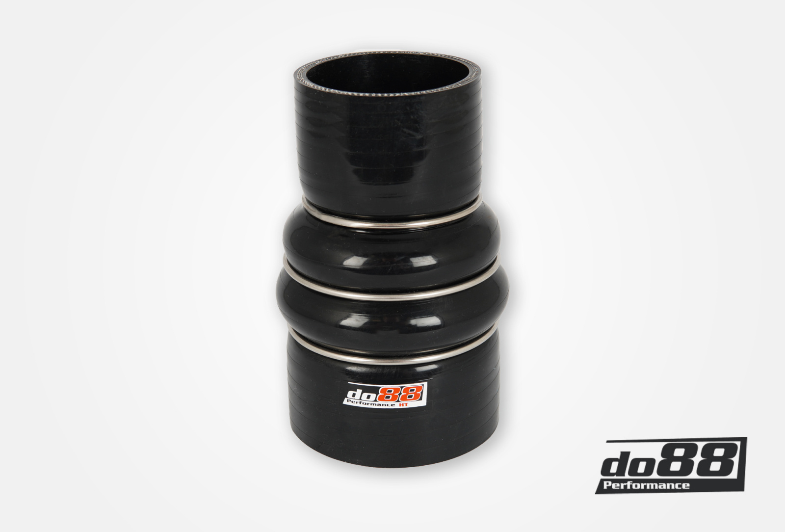 Mutta olemme ottaneet erilaisen lähestymistavan do88:lla. Oli selvää, että järjestelmä tarvitsee joustavan yhteyden kahden putken välille, joka pystyy käsittelemään lämpölaajenemista / -sopimista. Ratkaisumme on aramidilla vahvistettu silikoniletku, jossa on 3 kurvaa. Tämä letkusuunnittelu sallii liikkeen mihin tahansa suuntaan ilman taittamista tai liitosten rasitusta. Vahvistaaksemme suunnittelua vielä enemmän, putkissa on CNC-jyrsityt 6063-letkuliittimet, joissa on 3 mm seinämäpaksuus. Nämä letkuliitännät eivät muutu muodoltaan, vaikka letkuklampeja kiristettäisiin liikaa.