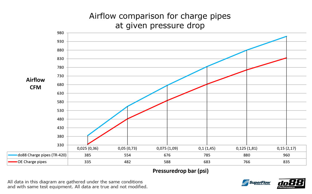 - Saavuttaa virtauksen 960 CFM @ 150mbar (2,17psi), ylittäen merkittävästi OEM:n 835 CFM.