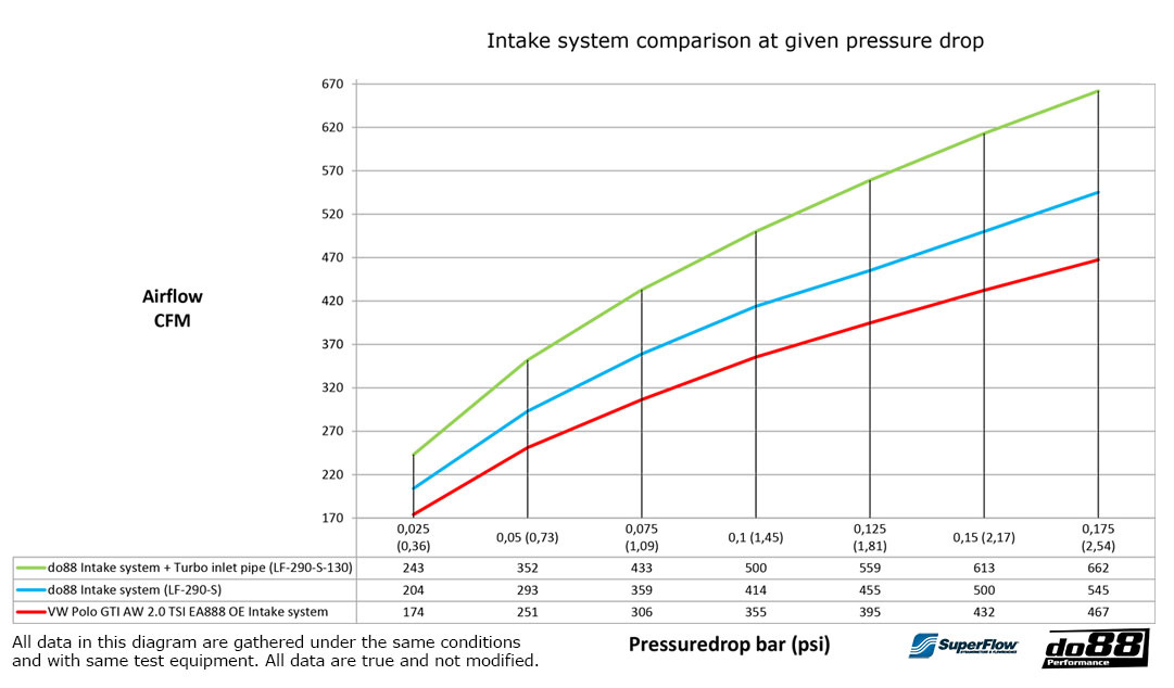 Muista aina, että EM-ilmanottojärjestelmä ja ilmansuodatin on suunniteltu auton alkuperäiselle tehotasolle. Tehon lisäys voi aiheuttaa sen, että alkuperäinen ilmanottojärjestelmä ei toimi riittävän hyvin. Jos ilmanottojärjestelmäsi ei tarjoa tarvitsemaasi suorituskykyä, turboahtimen on vaikeampi saada tarvitsemansa ilma, mikä heikentää moottorin hyötysuhdetta ja voi johtaa hevosvoimien menetykseen. Jopa moottorissa, jossa on ohjelmistopäivitys, do88 ilmanottojärjestelmä parantaa suorituskykyä vakioon verrattuna vakio ilmansuodatinkoteloon!