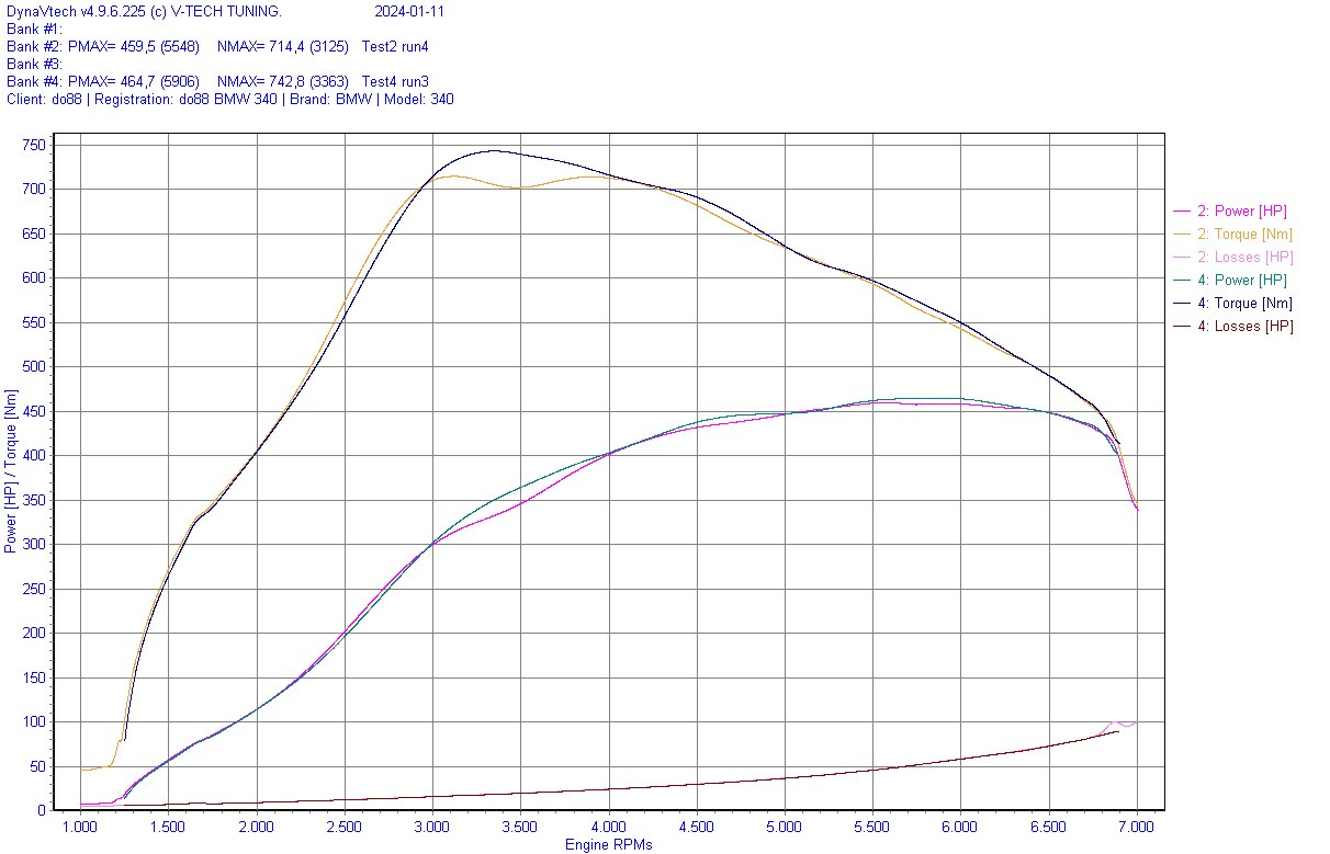 - Huipputehonlisäys 5 hv! Mitattu autossa, jossa on bootmod3 Stage 2+ (BMW 340i 2017).