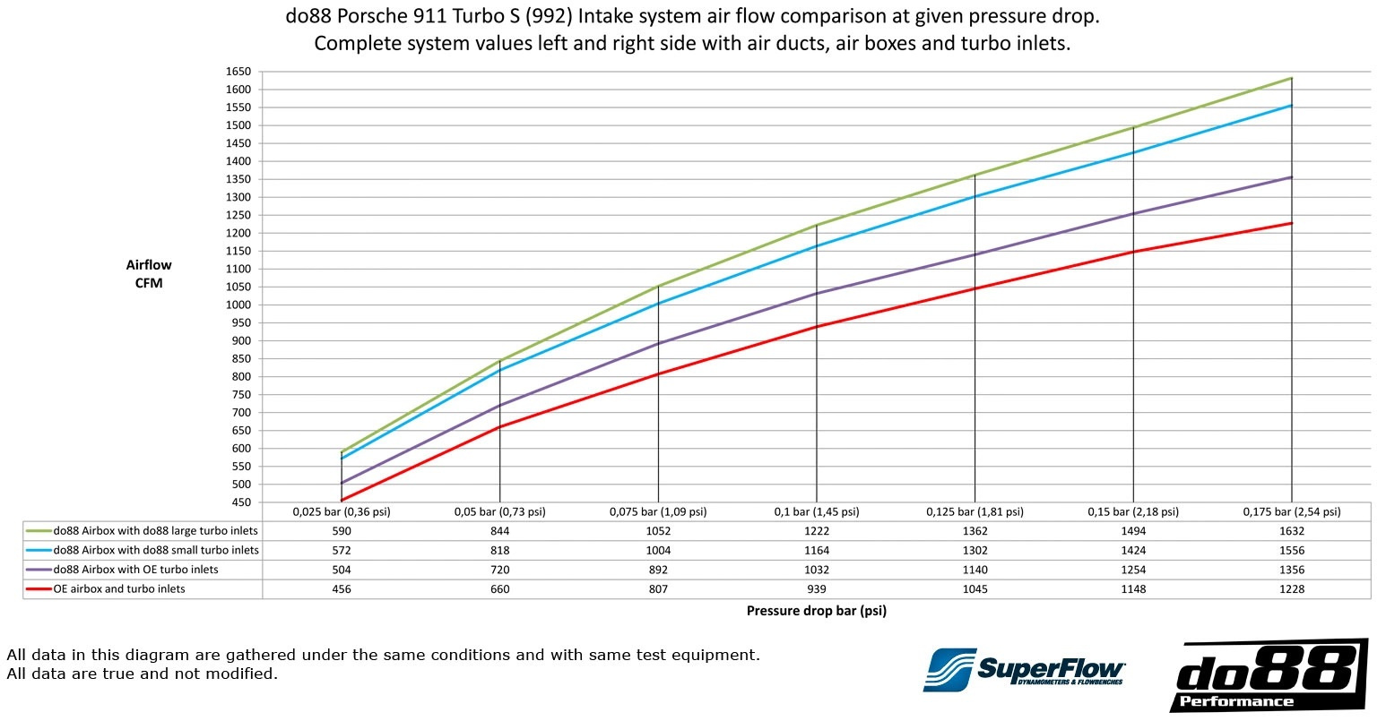 - Airflow at 0,175 bar / 2,54 psi pressure drop: 1356-1632 CFM (1228 CFM), 10-33 % higher! (depending on version)