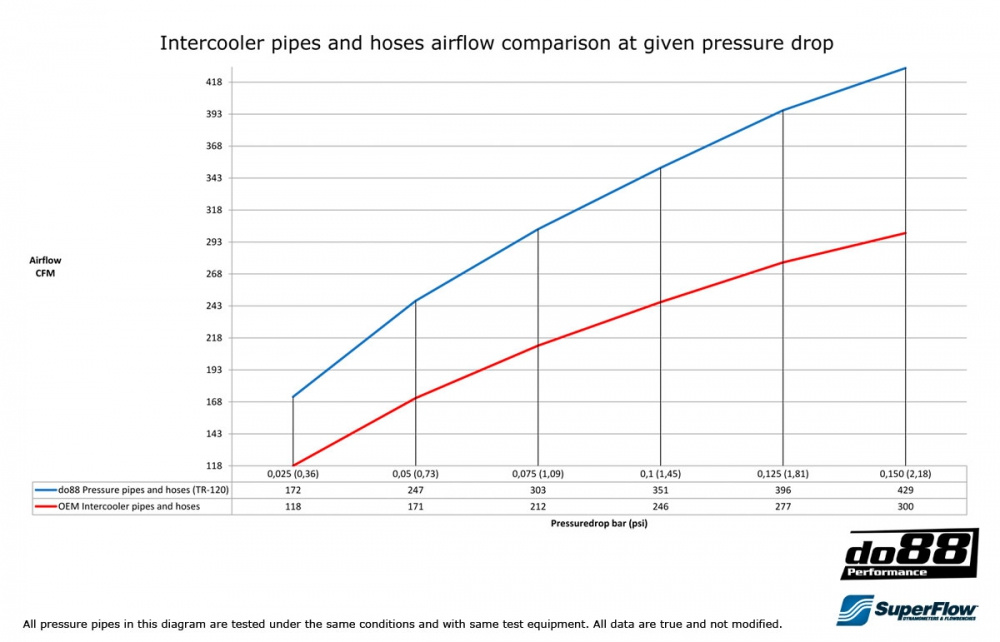 - Ilmavirta 0,15baarin/2,18psi painehäviöllä: 429CFM (300CFM), do88 43% korkeampi!
