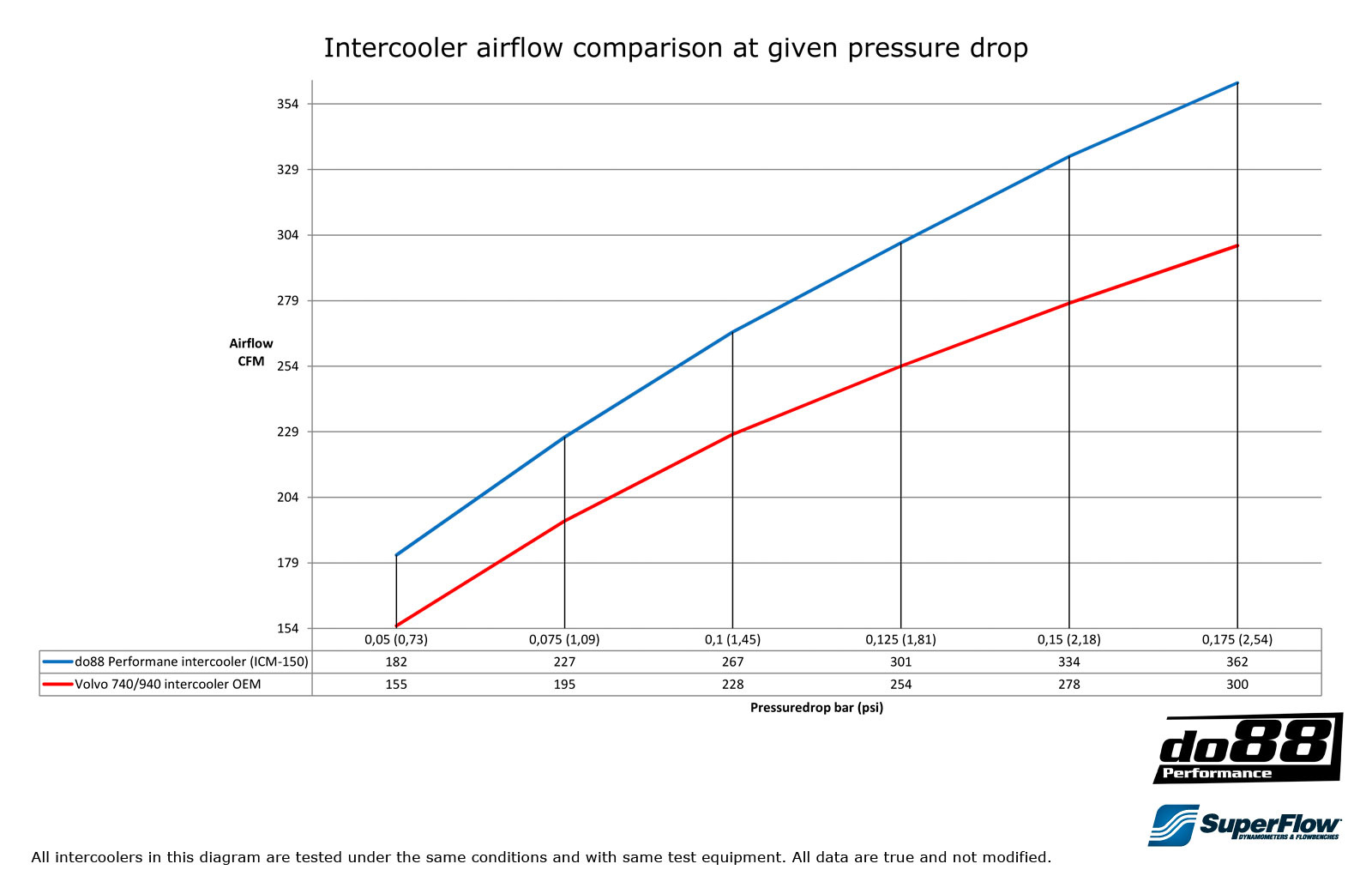 - Ilmavirta 0,15bar/2,18psi painehäviöllä: 334CFM (278CFM), do88 20% korkeampi!