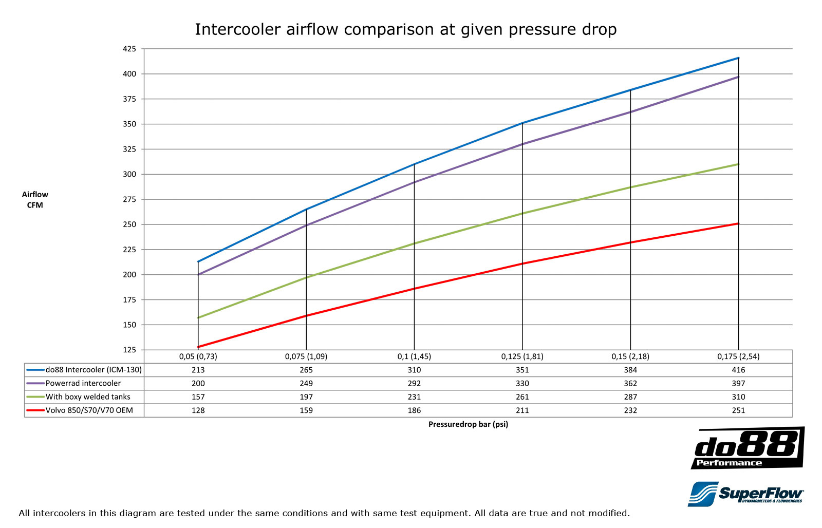 - Ilmavirta 0,15bar/2,18psi painehäviöllä: 384CFM (232CFM), do88 66% korkeampi!