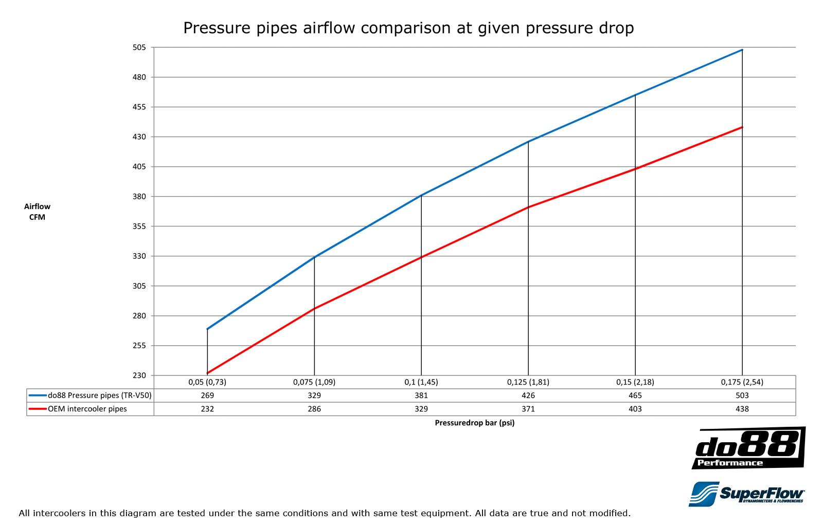 Jos tavoitteesi on optimoida moottorin teho ja vaadit vain parasta, niin tämä ahtoputkisarja on ehdottomasti oikea valinta! do88:n putkisarjoissa on huomattavasti parempi ilmanvirtaus kuin alkuperäisissä putkissa, tämän olemme tarkistanut ja vahvistanut useilla testeillä sekä autoissa ja meidän SuperFlow SF-1020 virtaus testipenkissä.