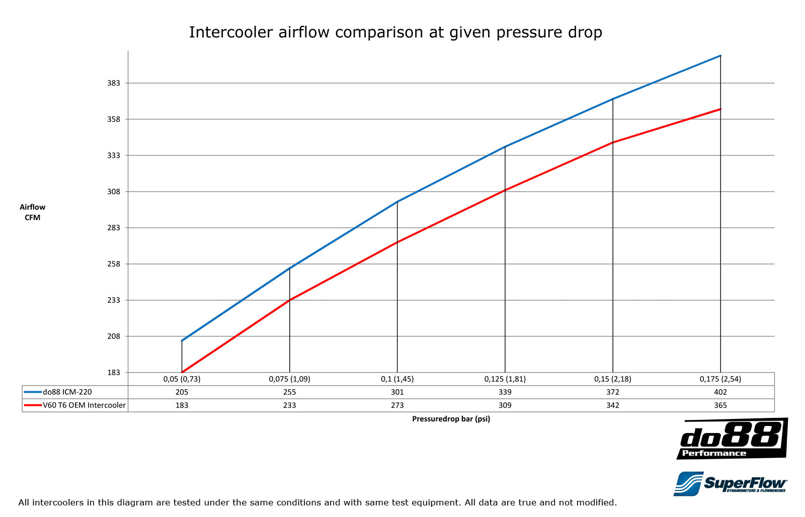 Kuumina Ruotsin kesäpäivinä, toistuvaa kiihdytystä ja innokas ajelu tai jopa ihan normaali ajo lämpimillä ilmastoalueilla saa moottorin tuottamaan vaarallisen korkean ahtoilman jopa ihan normaalissa ja ei viritetyssä autossa. Jäähdytysteho alkuperäisissä välijäähdyttimissä on monesti selvästi ala-arvoinen joka vaikuttaa moottoriin ja sen tehoon. Lämpö on poistettava, muuten luvattu teho vähentyy huomattavasti, kun painat kaasua. do88:n välijäähdytin takaa sen, että teho säilyy ja on siellä aina kun tarvitset!