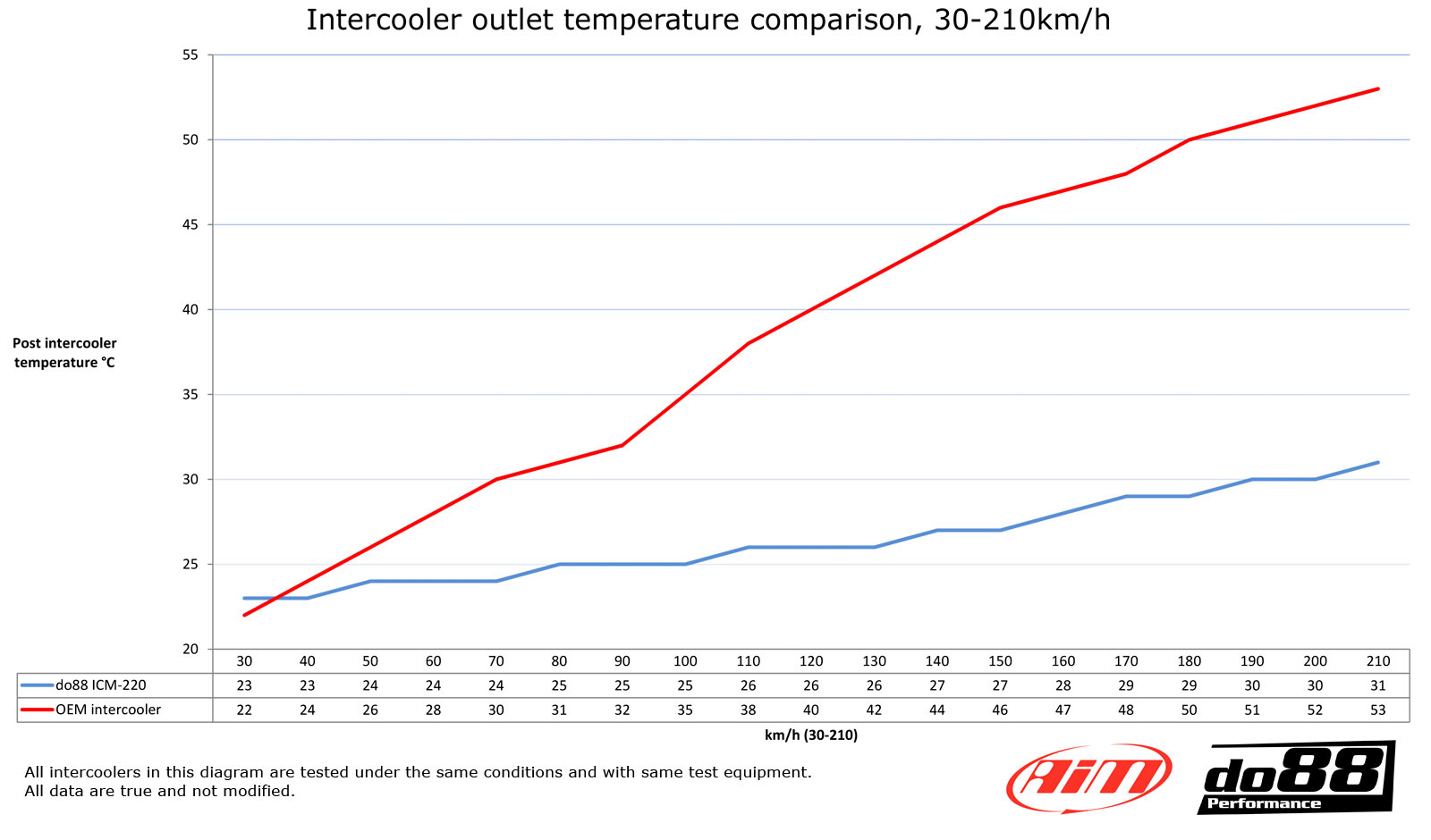 Kuumina Ruotsin kesäpäivinä, toistuvaa kiihdytystä ja innokas ajelu tai jopa ihan normaali ajo lämpimillä ilmastoalueilla saa moottorin tuottamaan vaarallisen korkean ahtoilman jopa ihan normaalissa ja ei viritetyssä autossa. Jäähdytysteho alkuperäisissä välijäähdyttimissä on monesti selvästi ala-arvoinen joka vaikuttaa moottoriin ja sen tehoon. Lämpö on poistettava, muuten luvattu teho vähentyy huomattavasti, kun painat kaasua. do88:n välijäähdytin takaa sen, että teho säilyy ja on siellä aina kun tarvitset!